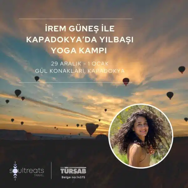 Yeni yılı İrem Güneş ile Kapadokya’da birlikte karşılayalım 29 Aralık – 1 Ocak tarihlerinde gerçekleşecek bu kampta güne meditasyon, yoga, nefes pratikleri ile başlayacak, gün içinde Kapadokya’nın büyülü atmosferini keşfedecek ve yılbaşını birlikte kutlayıp yeni yıla bomba gibi bir giriş...