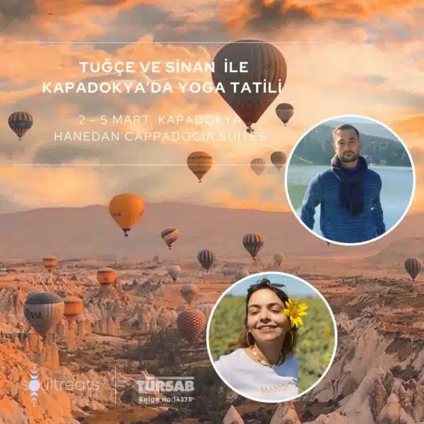 Kapadokya’nın büyüleyici doğasında, Hanedan Cappadocia Suites’de gerçekleştireceğimiz yoga kampımıza seni bekliyoruz. 02-05 Mart tarihlerinde her seviyeye ve her yaştan katılımcıya uygun, sabah ve akşam yoga pratikleri ile çeşitli nefes ve meditasyon uygulamalarının olduğu, beden farkındalığının arttığı bir yoga kampı seni...