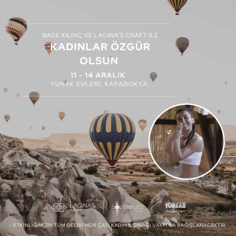 Kadınlar Özgür Olsun | Kapadokya Kampı Kadınların özgür ve güvenli yaşayabilmesine katkı sunma niyetiyle yola çıktığımız bu kamp, bedeni, nefesi ve ruhu besleyen bir buluşma olacak. Sabahları bedenle çalışma, nefes egzersizleri ve meditasyon Koku atölyesi & kakao seremonisi Kapadokya’nın eşsiz...
